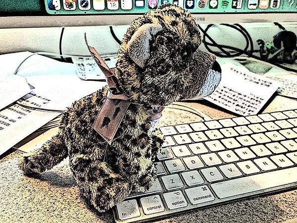 (旁邊是導師送他的小老虎,知道他過敏,還特地選可以水洗的)